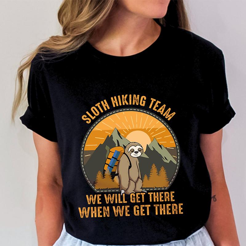 Sloth Hiking Team Printed Tshirt Adventure Hiking Lover Gifts Crew Neck Short Sleeve Tshirt Funny Sloth Moutainers Retro Shirt