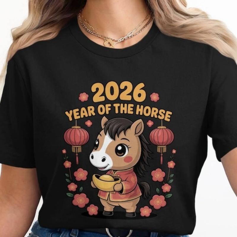 2026 Year of The Horse TShirt Chinese New Year Gift Lunar New Year Tee Lucky Horse Graphic Holiday Celebration Cute Animal Tops