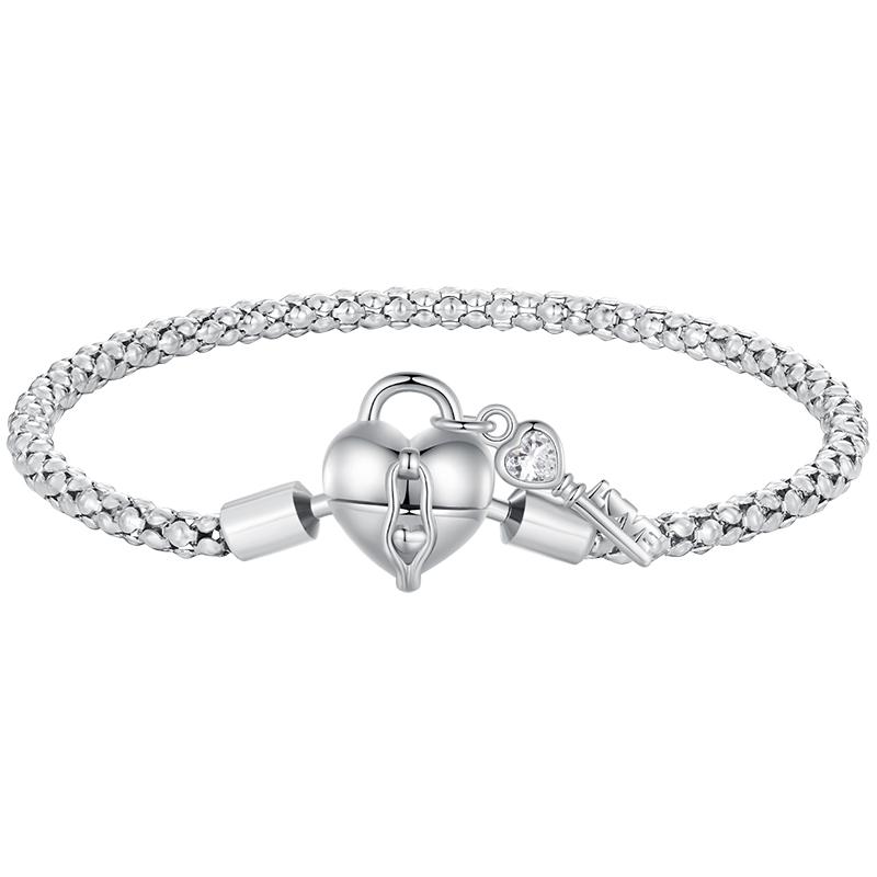 WOSTU Solid 925 Silver Heart Lock Key Basic Chain Bangle Bracelet For DIY Charm Beads Snake Chain Links Jewelry Gift