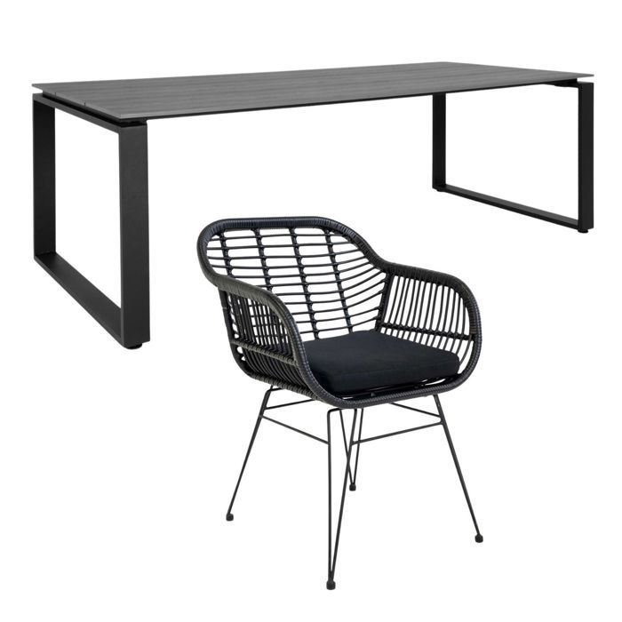 Table de jardin - HOUSE NORDIC - 210 x 100 cm - Aluminium - Plateau effet bois gris - 6 places