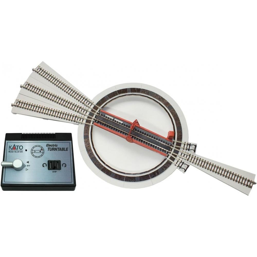 The KATO N Gauge Electric Turntable 20-283 allows the recreation of scenes from historic train stations. This product is designed to arrange various train models and helps users enjoy the scenery of a real train station.
