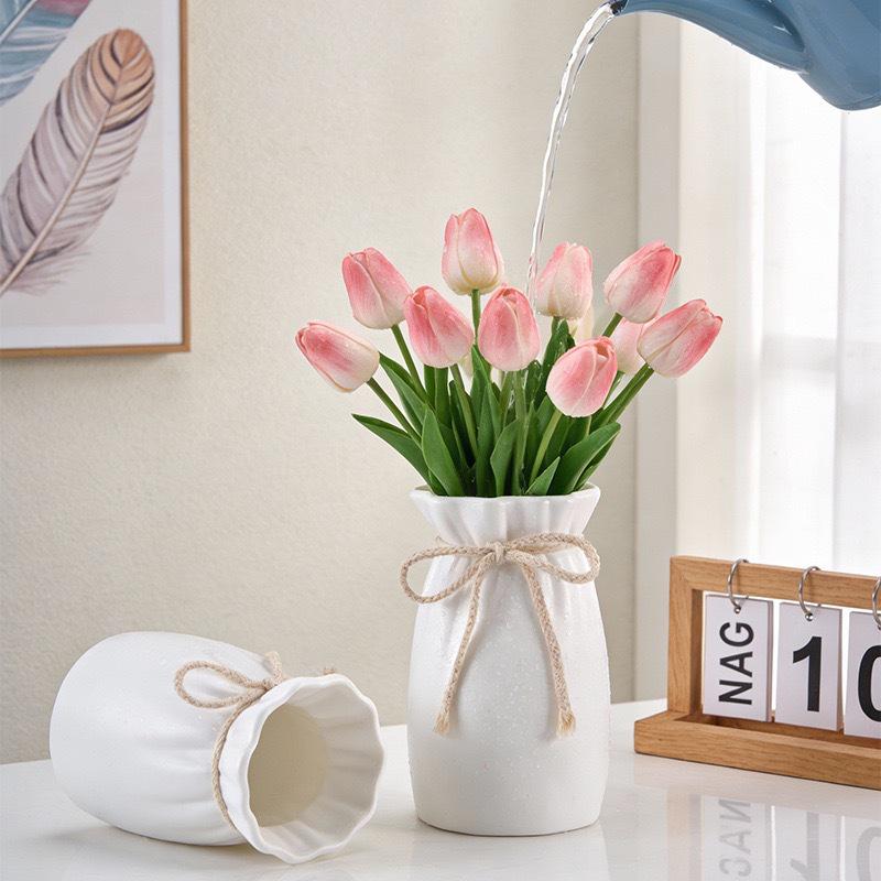Plastic Vase with Artificial Flowers - Living Room Decoration Imitation Ceramic Ornament