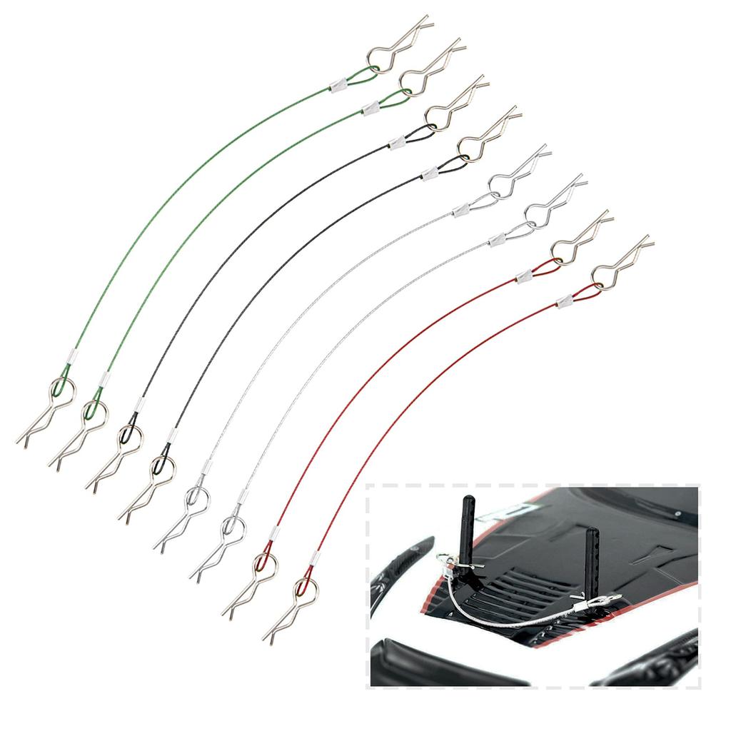 Metal Clip R Pin Rod with Steel Cord for RC Body Compatible with and Scale Traxxas HSP Arrma Axial Redcat RC and Crawlers 8-Piece Anti-Lost Housing,