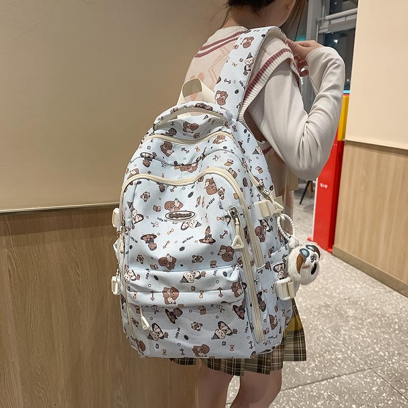 Junior High School Student Backpack Light Bear Print Elementary School Student Large-capacity School Bag Girl Cute Backpack Japanese Ins