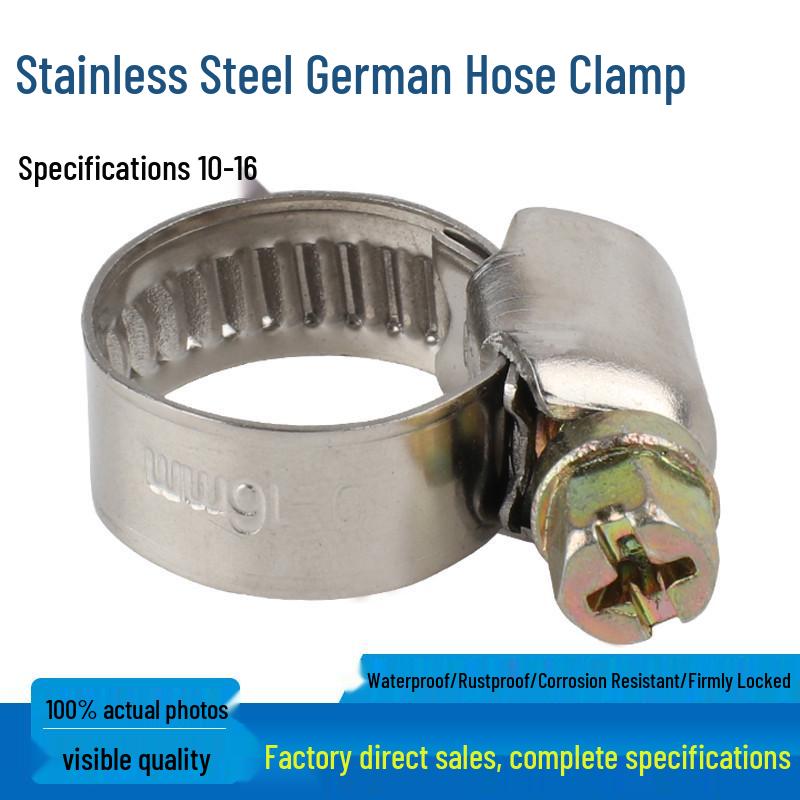 German-style Stainless Steel Hose Clamp for Gas, Water, and Oil Pipes - Semi-Steel Screw, Car Heater Clip.