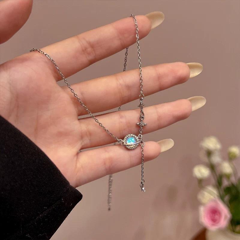 New Moonstone Saturn Necklace Collarbone Chain Women's High-end Light Luxury Niche Design Jewelry