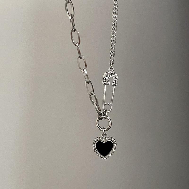 Black Love Necklace Women's Pin Personality Fashion Retro Versatile Sweater Chain Clavicle Chain Accessory Design Sense