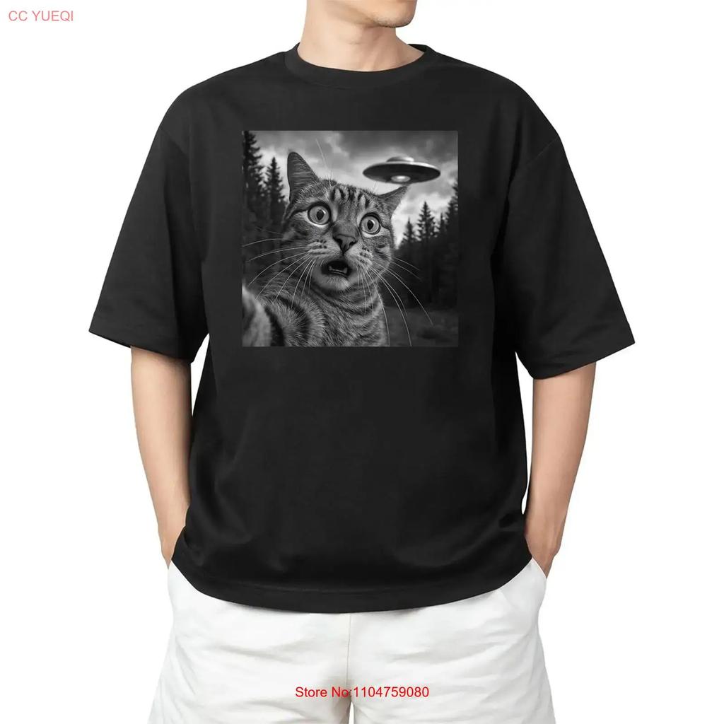 Cat Selfie UFO Alien Spaceship Abduction T Shirt For Adult S 4XL Vintage Washed Casual Homme Fashion Streetwear Slightly