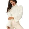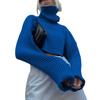 Women Sweater High Collar Flared Long Sleeve Short Knitting Tops Solid Color Loose Fit Ribbed Casual Knitwear