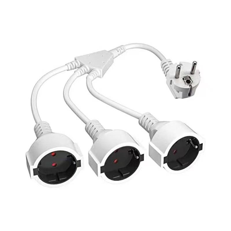 European Plug 3x1.5mm² One-to-Three Power Extension Cord with Protective Connector, 0.34m