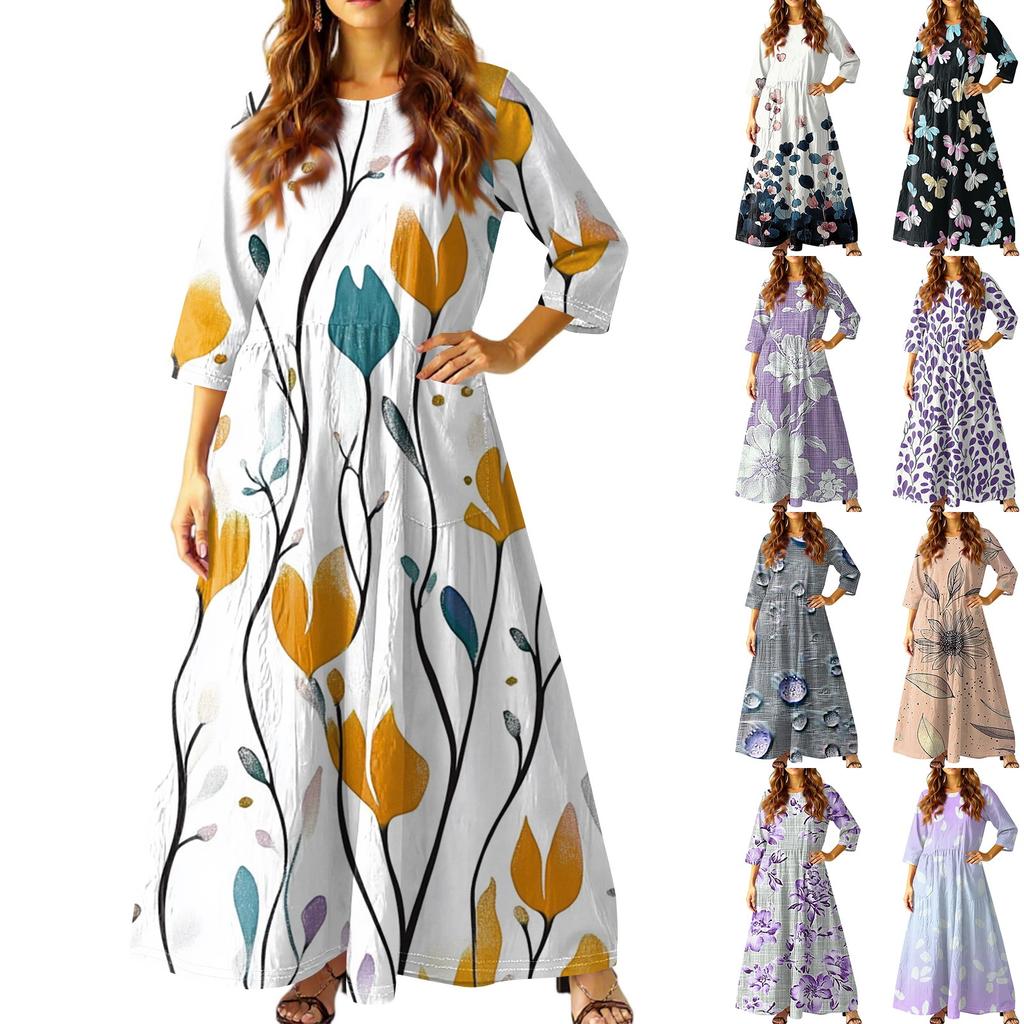 Women's Casual Fashion Vintage Floral Print Three-quarter Sleeve Long Dress With Pockets Women's Summer Casual Floral Print Short Sleeve O Neck High Waist A Line Tiered Flowy Boho Maxi Dress We can guarantee that the overall displayed in the photography is accurate, however there may be differences in how the appears during wear. This depends other physical variables, e.g. personal body size, body shape, limb proportion, height, etc. Description: MATERIAL: Our short-sleeve summer dresses feature a skin-friendly, soft, and elastic fabric that is breathable, does not shrink, and offers exceptional comfort, providing you with a delightful wearing experience. MATCHING: Pair with and a denim jacket for a relaxed day, or to a and heels for work. Add jewelry and heels for nights out, or sandals and a crossbody bag for weekends. OCCASION: This dress is versatile for various occasions like everyday wear, casual outings, work, evening events, weekend gatherings, beach trips, vacations, and travel adventures. Gender:Women Material:Polyester Dress Length:Knee-Length Decoration:None Silhouette:A-Line What you get:1 Dress Note: Due to possible physical differences between different monitors, the product photography is illustrative and may not precisely reflect the actual color of the item received