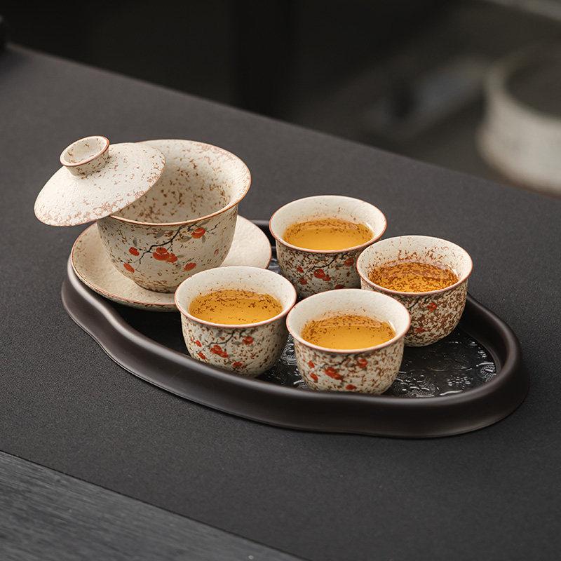 Firestone Gaiwan Tea Set: High-End Ceramic Teapot, Teacup, Handle Kettle for Home or Office Tea Brewing.