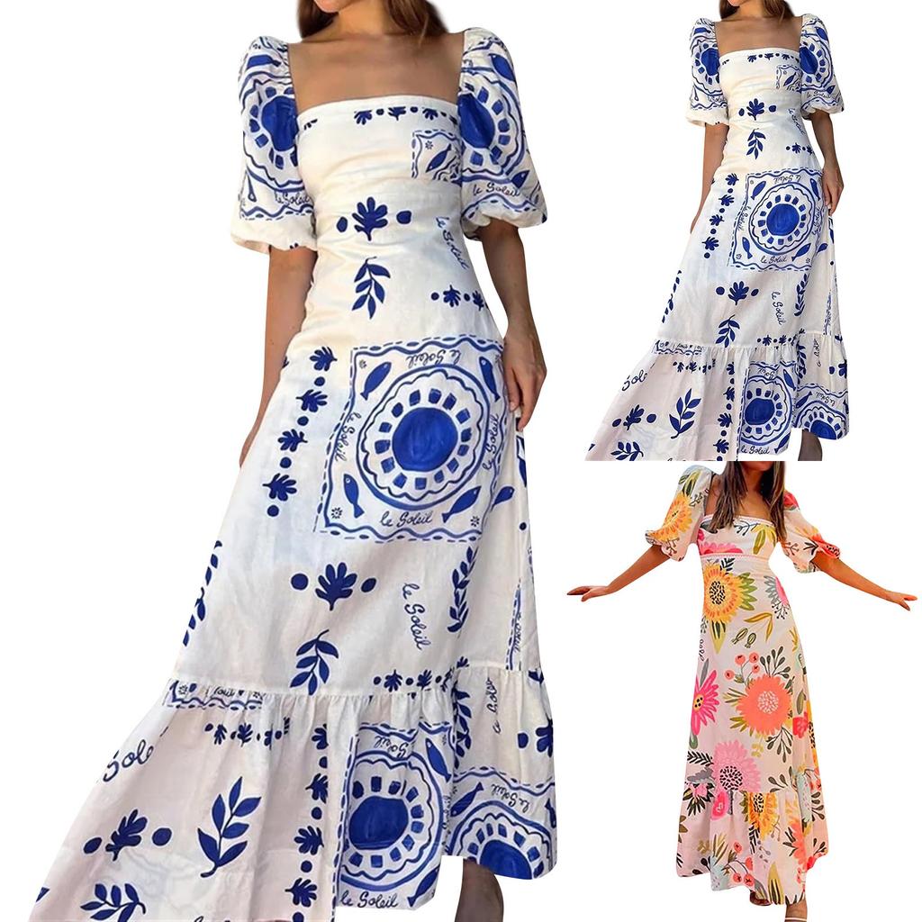 New Sexy Women's Suspender Positioning Printed Sleeveless Strappy Dress With Large Hem Women's Floral Dress-----The maxi dress is made of comfy and lightweight polyester, supplying you cool and cozy wearing experience. this bohemian dress is light but not see-through, not heavy even in the sultry weather. the short sleeve swing dress is definitely the first choice for summer wardrobe. Floral Dress For Women-----Women one shoulder maxi dress/ditsy floral maxi dresses for women/sleeveless sundress for women/high elastic waist a-line dress/long flowy dress for women/ruffled hem bohemian dresses/knot off shoulder boho dress/tiered swing dress for women/summer beach dresses for women/fit and flare dress for women/swing dress for women. Floral Dresses-----Delicate bohemian dress for women ! the maxi dress provides you soft pleasant experience, friendly to skin. the highlight of the boho dress is print, embellish your beauty. two patterns for you to choose: floral and polka dot. this cross v neck flowy summer dress greatly show your clavicle. the a-line swing dress with a belt, adjust to your comfort level. Flowy Dresses For Women-----The floral maxi dress with heels or sandals for a fantastic look in summer, you'll love. you can also dress it with short denim jacket or cardigan, pairing with boots in fall and spring Party Dress-----Maxi dresses for beach vacation, casual outdoor, work, , party, club, cocktail, evening, shopping, wedding, vacation, beach, daily life, wedding guest, maternity, perfect for spring and summer wearing. vintage maxi dress which makes you look and attractive in all the right places.