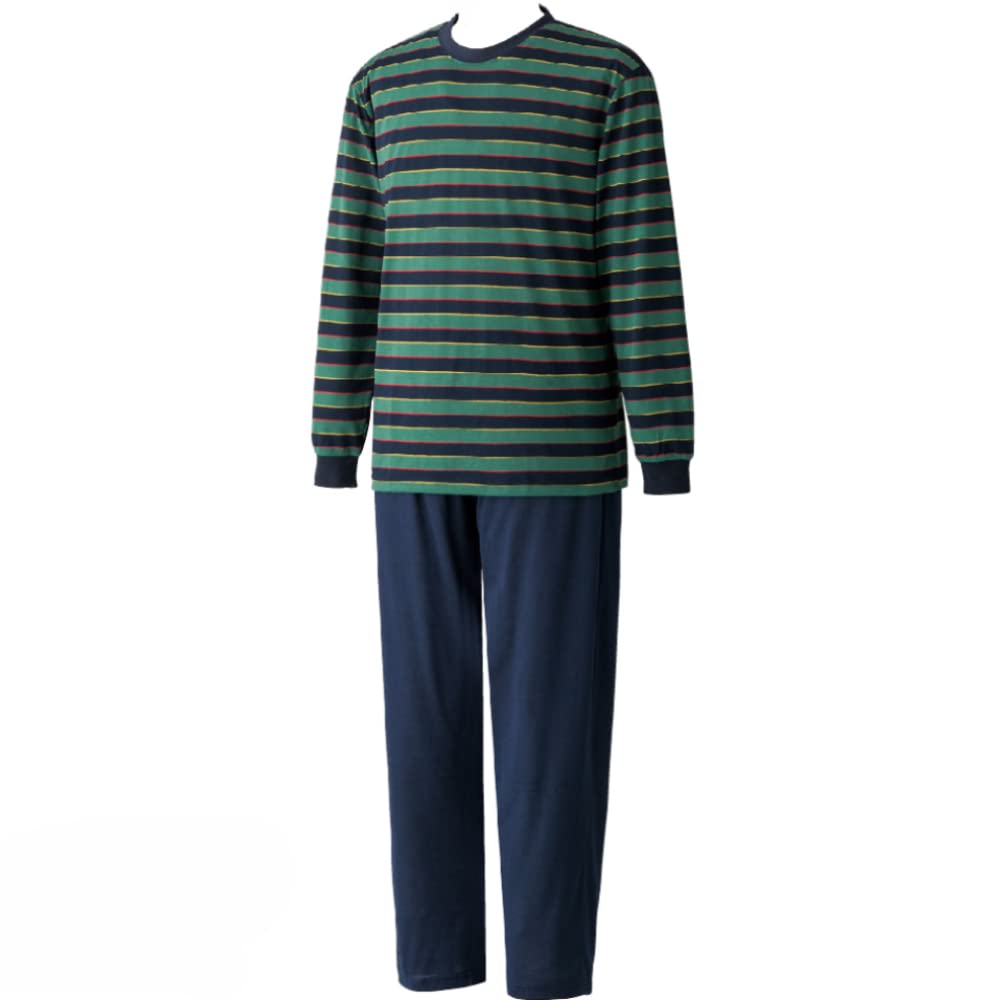 MY Comfortable British Long Relaxing Wear Navy X [KISS LIFE] Men's Loungewear, Stripe, Sleeve, Men's Pajamas, (L, Green) (kml800619b2)