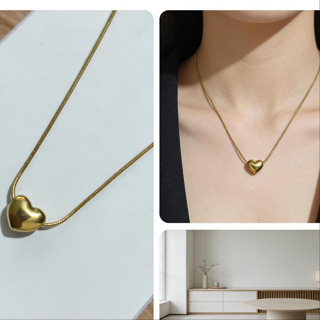 Korean Minimalist Heart-Shaped Clavicle Necklace - Smooth Surface, Light Luxury Design