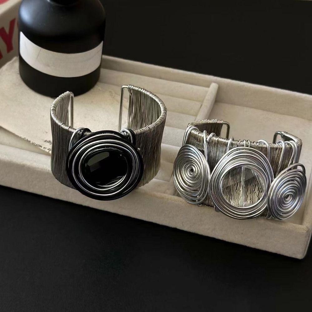 Punk Goth Metal Wire Bracelet Line Twined Exaggerated Bracelet Y2K Rhinestone Bracelet Gifts