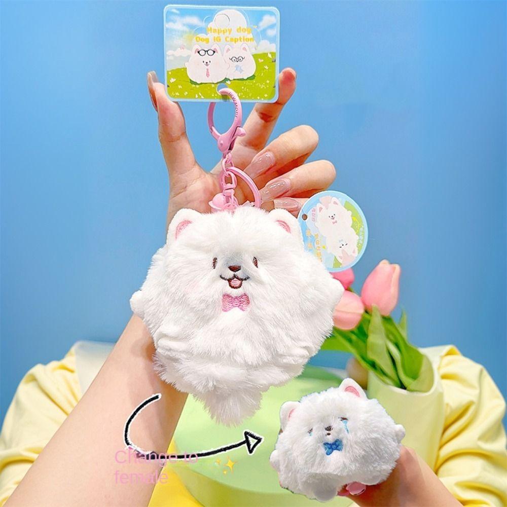 Cartoon Stuffed Animal Doll Keychain Fluffy Doll Squeaky White Dog Pendant Backpack Decor