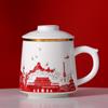 Chinese Style Ceramic Tea Cup with Lid, Filter, and Logo