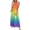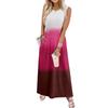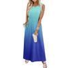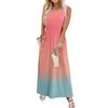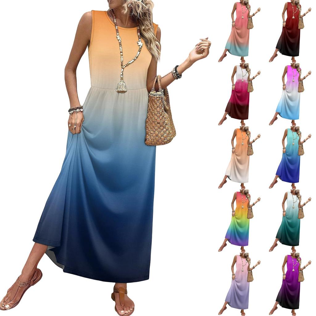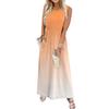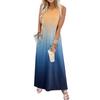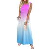 Ladies' gradient printed casual and fashionable waist cinched sleeveless dress