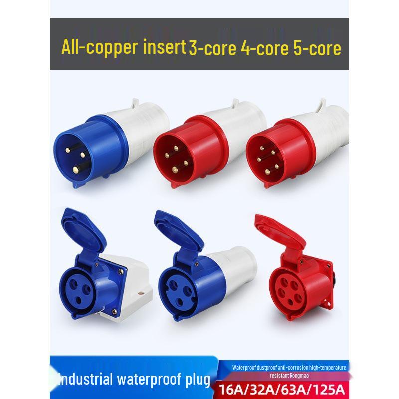 3/4/5 Pin Waterproof Aviation Connector, 32A, Three-Phase, Male & Female, Non-Explosion-Proof