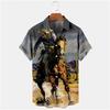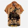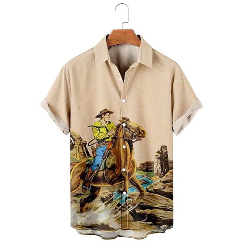 Vintage Men's Shirts Casual Retro Cowboy Poster Shirts 3D Print Turndown Collar Shirt Short Sleeve Shirt Summer Shirts For Men