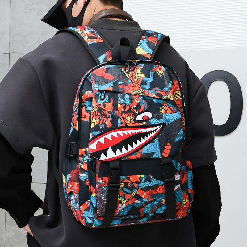 Personalized Graffiti Shark Backpack Korean Version of Male and Female Students Schoolbag Large Capacity Casual Versatile Sports Backpack