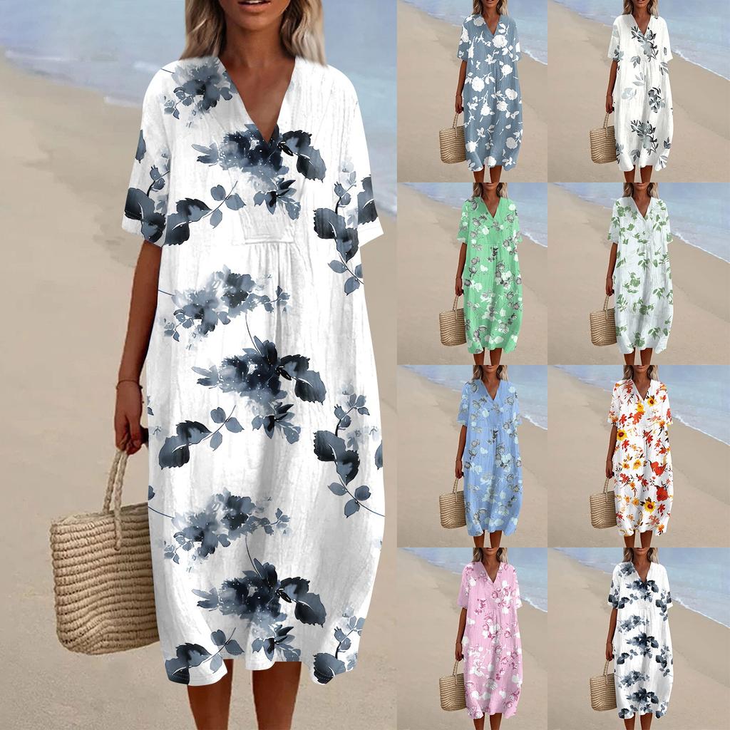 Women's Loose Casual Fashion V-Neck Printed Dress Beach Skirt Features: Material: Made of high quality material, and suitable for daily wear, made of soft fabric, polyester, light and comfortable, wardrobe , easy to dress up or take off, comfortable to wear all day. Occasion: This dress is perfect for everyday, outing, party, work, casual wear. It's so random you might some extra covers! This one is available in a variety of colors to suit your personal . It is the best choice for gift giving Wash with cold water, the size will not change much, if you have any questions when choosing, welcome to consult Different monitors will have a little color difference, please don't mind Product information: Gender:Women Material:Polyester Pattern Type: Color Occasion:Casual,Daily,Party,Beach Both hand wash and machine wash is OK Package include:1 PC Women's Dress
