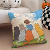 Cartoon Cute Cat Picture For Wake Up Cushion Cover Throw Pillow Cover Hidden Button Durable Polyester Chair Cushion
