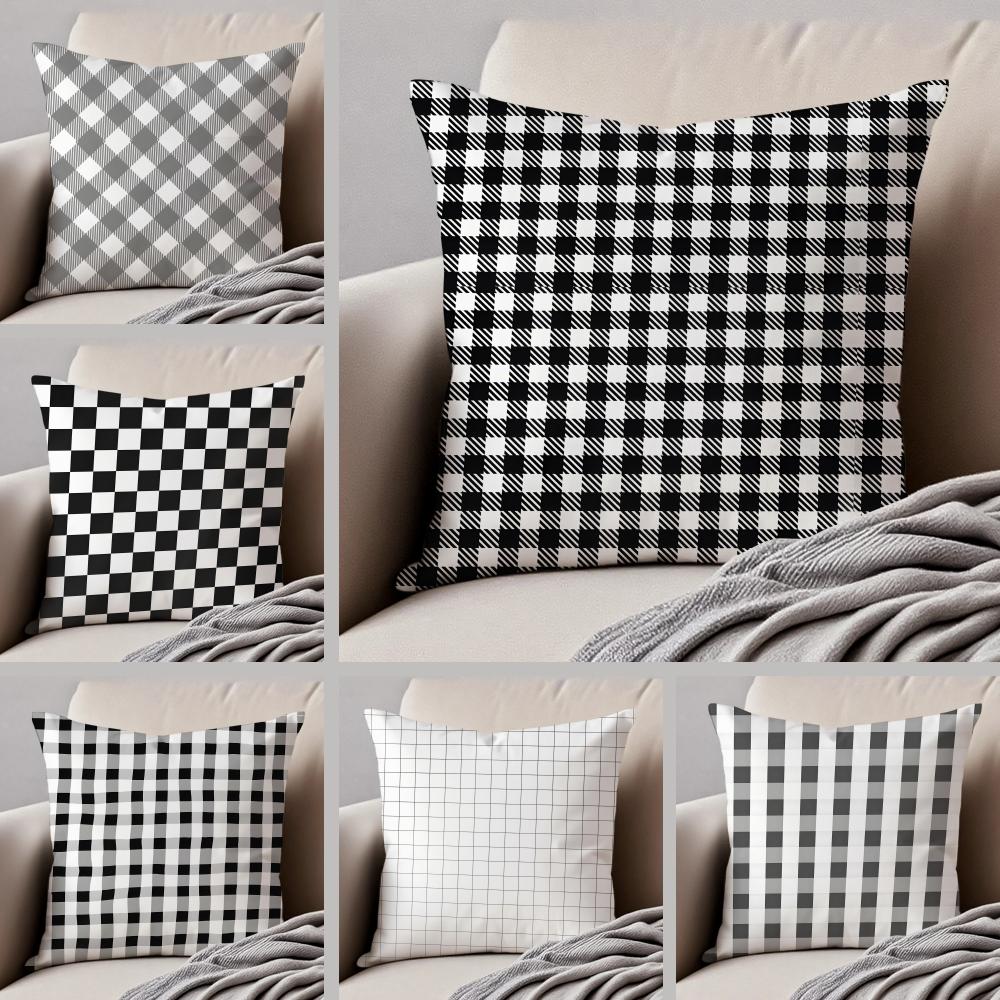 Blackandwhite Pattern Cushion Cover Throw Pillow Cover Hidden Button Durable Polyester Chair Cushion
