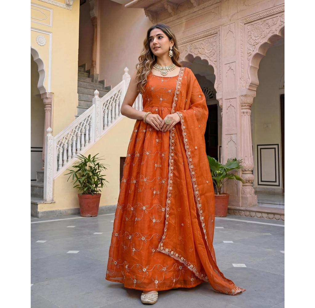 Women Designer Anarkali Fandy Silk Gown Pant Dupatta Set Party Wear Bollywood Salwar Suit
