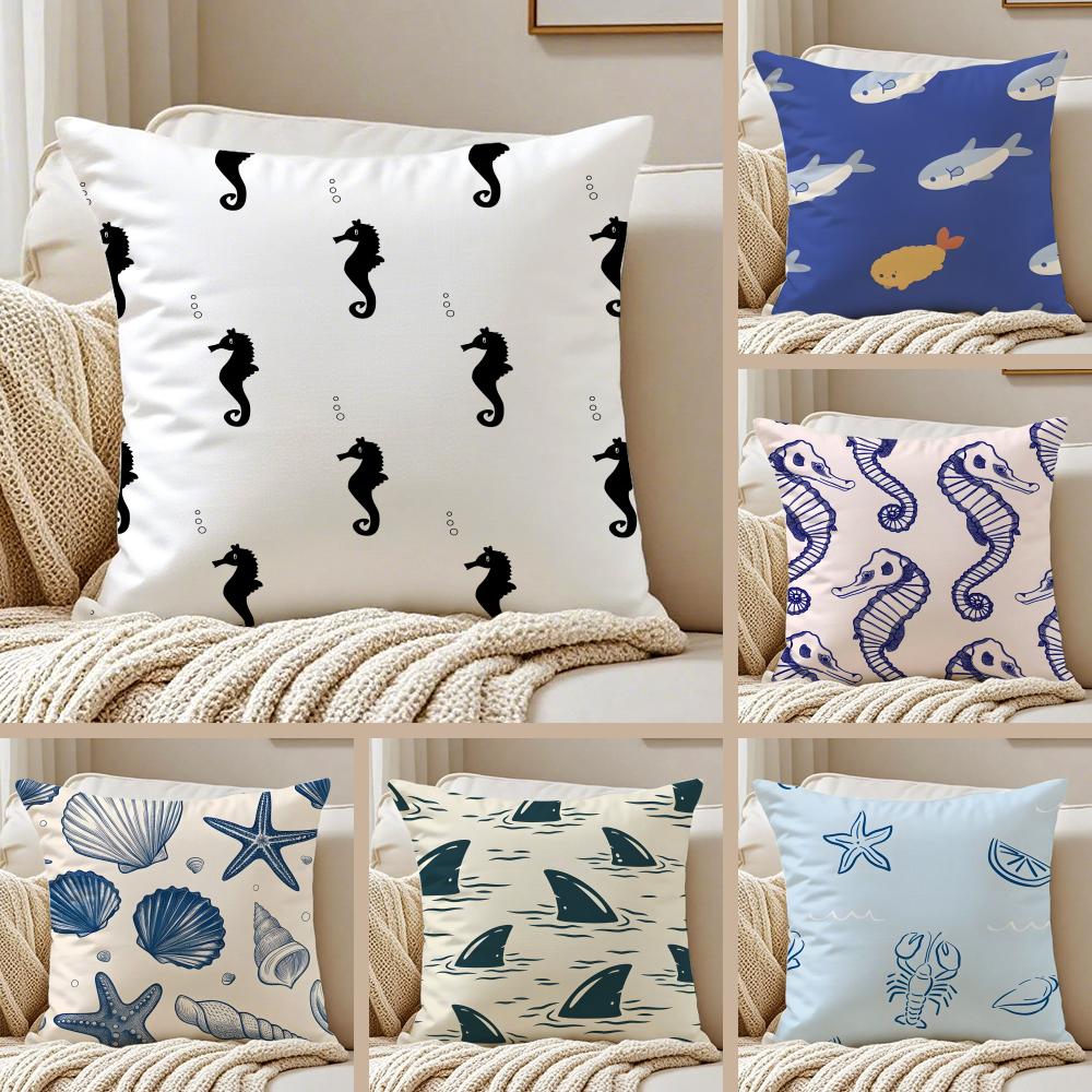 Casual Marine Organism Cushion Cover Pillowcase Antidustmite Invisible Zipper Short Plush Sofa Cushion