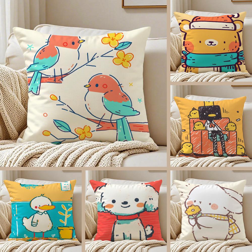 Countrystyle Adorable Animal Illustrations Cushion Cover Pillowcase Antidustmite Invisible Zipper Short Plush Sofa Cushion