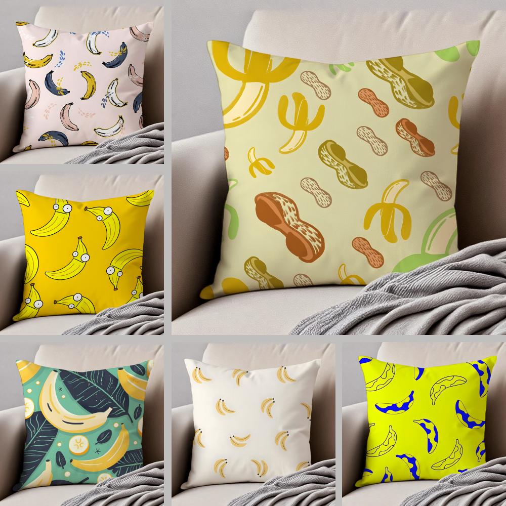 Pastoral Simple Handdrawn Banana Cushion Cover Throw Pillow Cover Hidden Button Durable Polyester Chair Cushion