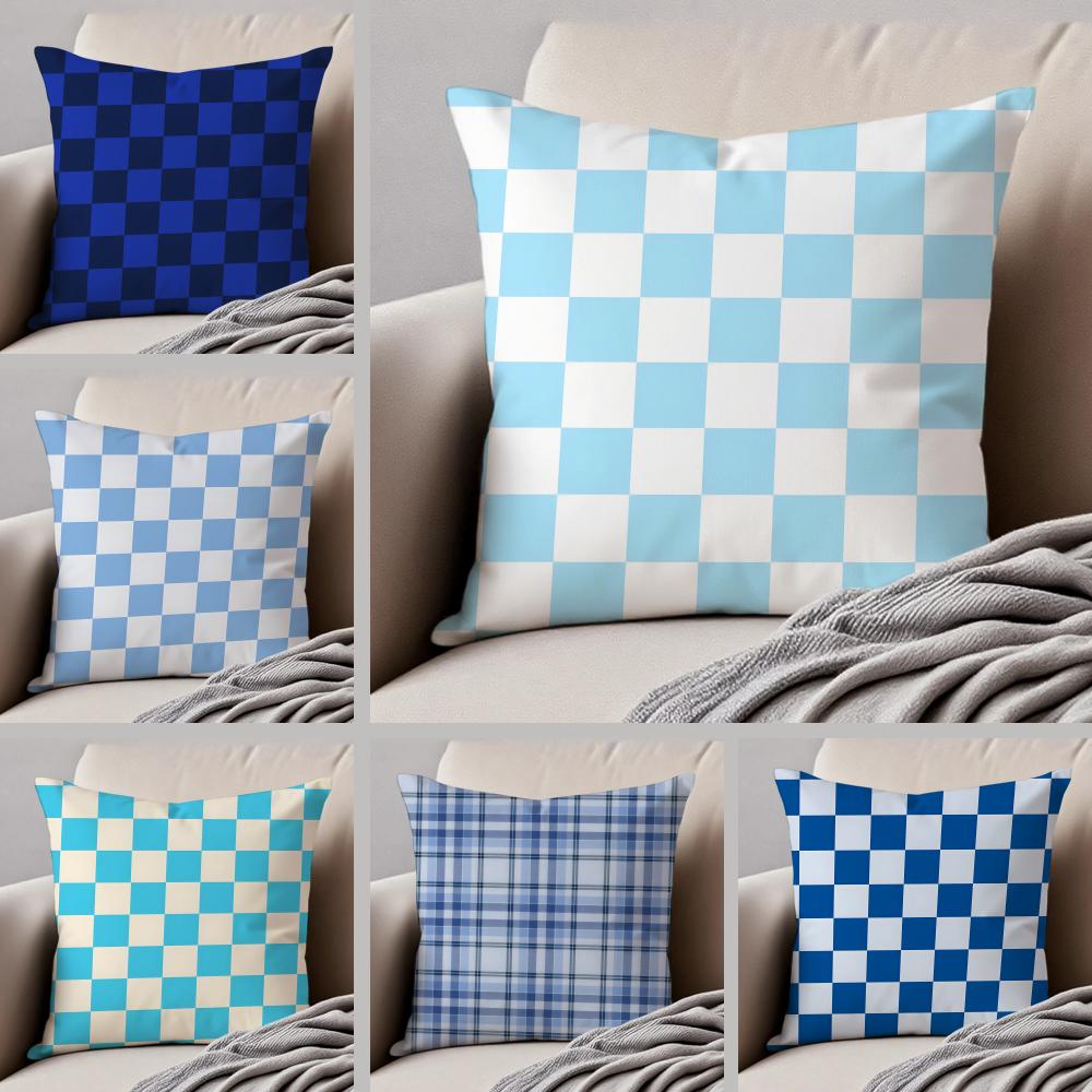 Classical Blue Tartan Design Plaid Cushion Cover Throw Pillow Cover Hidden Button Durable Polyester Chair Cushion