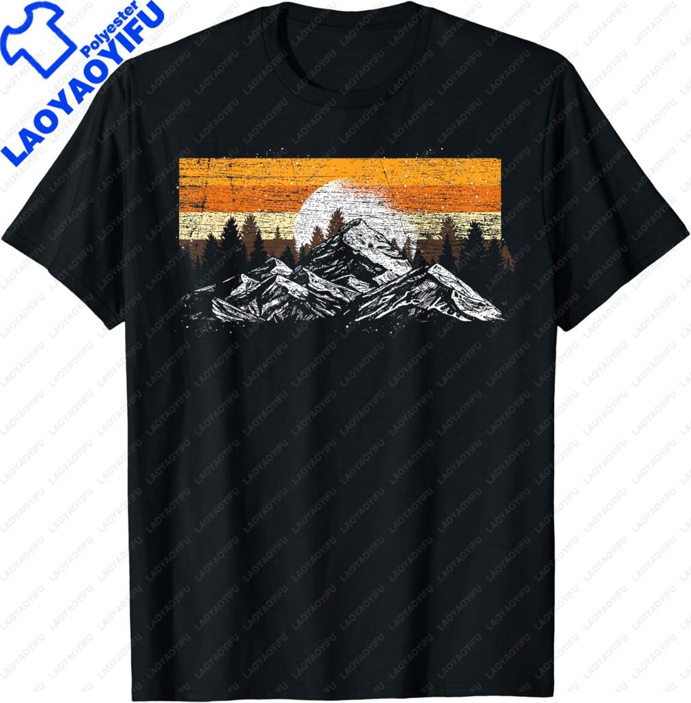 Full Moon Outdoor Nature Wildlife Mountains Retro Forest TShirt Graphic T Shirts Men Clothing Tops Camisas Streetwear