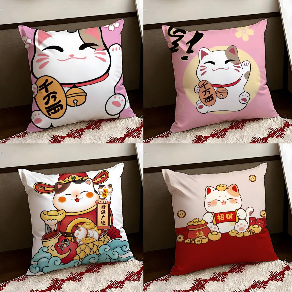 Neko Rich LLuck Money Cat Cushion Cover Reversible Soft Durable Pillow Cover Home Car MultiScene Use for Daily Comfort