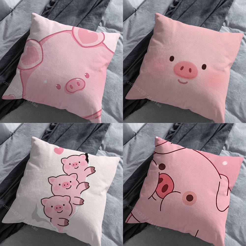 Cartoon Pink Pig Cute Art Various Sizes Square Pillow Case For Car Home Bedchamber Decor Birthday Gift