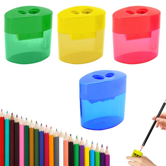 Dual Hole Design for Versatility: Featuring two different-sized holes, this manual sharpener accommodates various pencil thicknesses. Available in vibrant pink, green, blue, and yellow options, these colorful sharpeners not only add fun but also enhance children's writing comfort. Easy to grip and use, it's a versatile tool for everyday tasks.