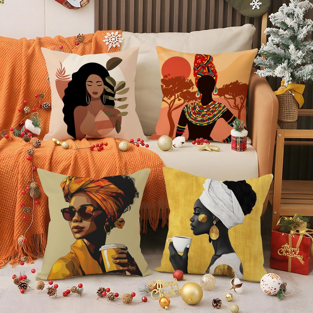 African Women Pillow Case Silky Elegant Comfort Sofa Bed Invisible Zipper