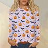 Women's Fashion Casual Halloween Printed Round Neck Long Sleeve Pullover Top