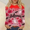 Women's Fashion Casual Halloween Printed Round Neck Long Sleeve Pullover Top