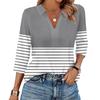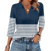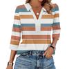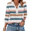 Women's Fashion Casual Lapel 3/4 Sleeve Print Shirt Women's V-Neck Tops