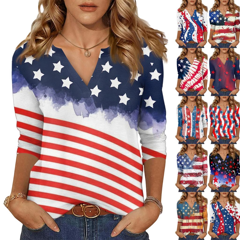 Women's Casual Fashion Sexy Comfortable V-Neck Independence Day Seven Sleeve Top