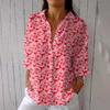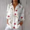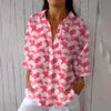Women's Fashion Seven Sleeve Casual Lapel Back Tie Shirt Printed T-Shirt Top