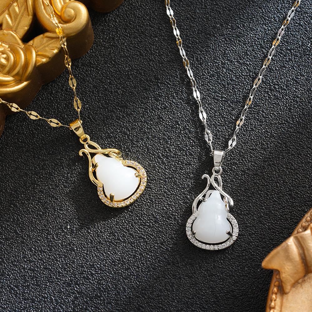 Elegant European & American Style Korean Stone Gourd Pendant Necklace, Fashionable Clavicle Chain, Internet Celebrity Inspired.