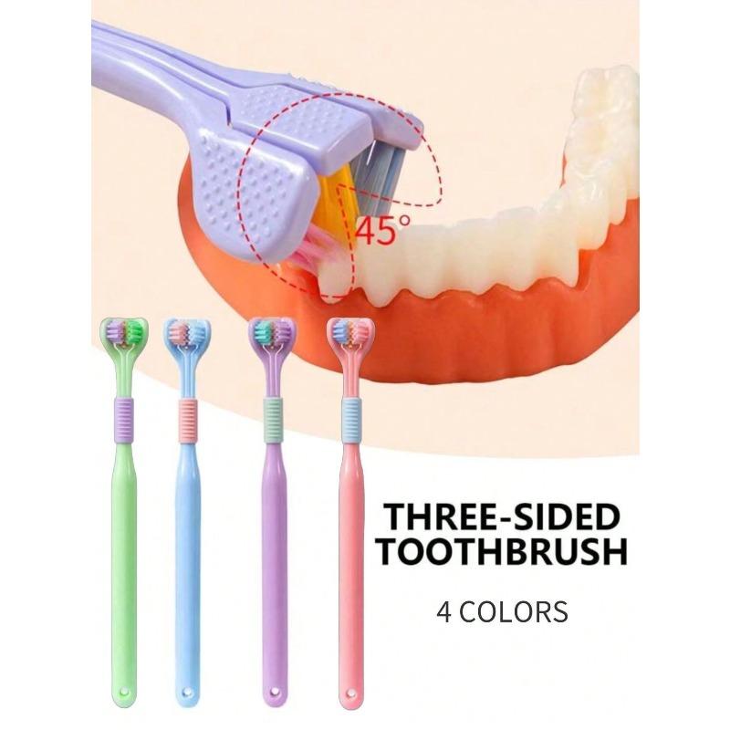 1pc 3-Sided 45 Degree Triangle Toothbrush, 3X Deep Cleaning Oral Care Toothbrush With Tongue Scraper