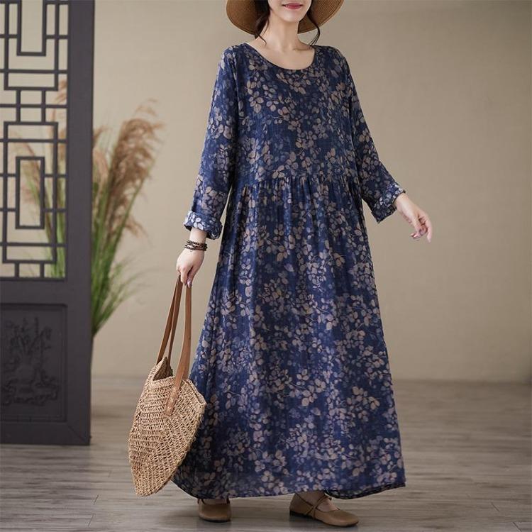 Floral Printing Vintage Maxi Dress for Women Plus Size Spring Summer Long Loose Style Lady Dress