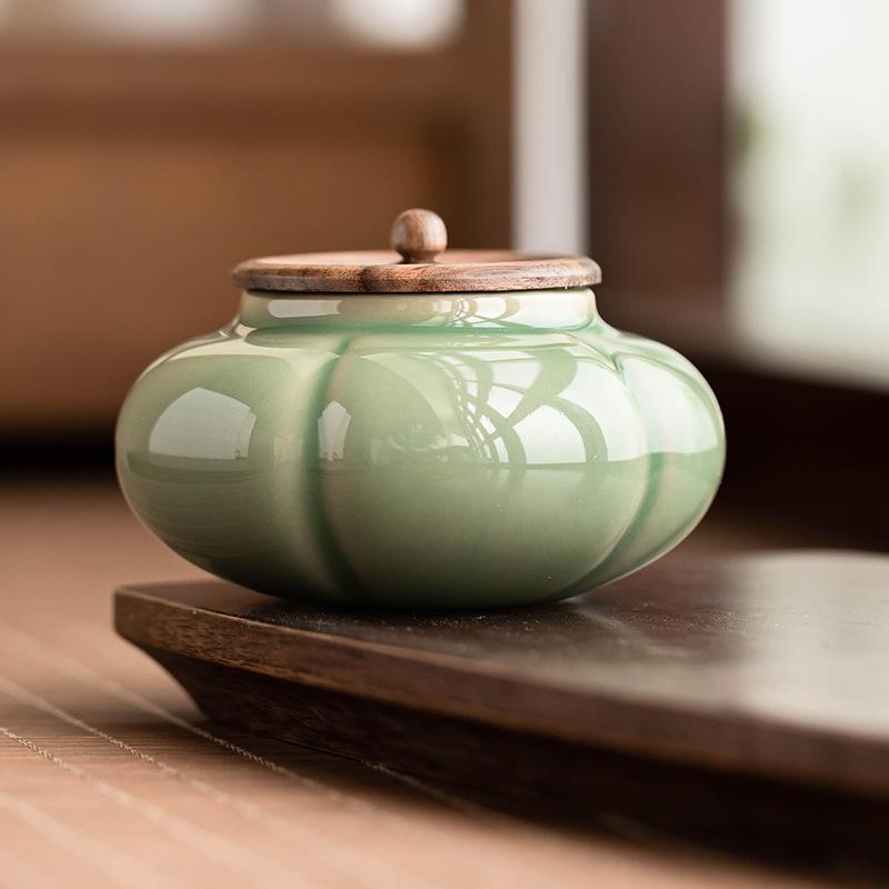 BRCeramic Pumpkin Tea Can Creative Ceramic Sealed General Can Home Kitchen Pu'er Tie Guan Yin Storage Can Tea Ceremony AccessoriesEY