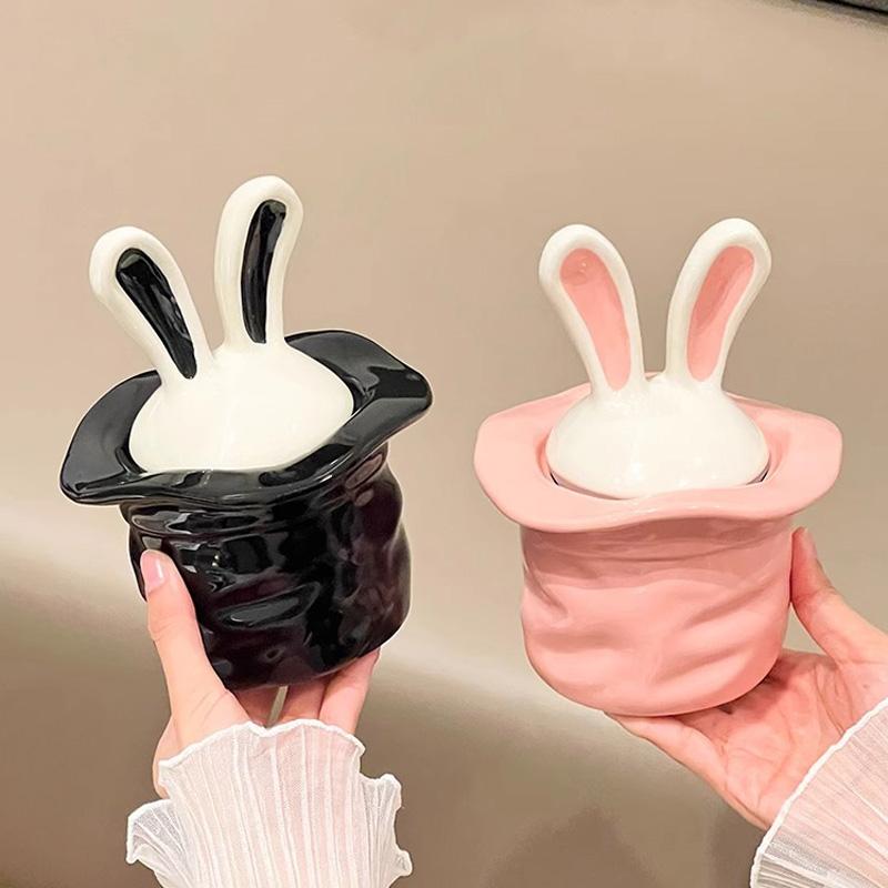 Rabbit Ear Ceramic Jar Kitchen Coffee Bean Tea Storage Jars Children Snack Storage Jar Bedroom Dressing Table Accessorie Bottles