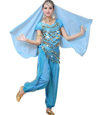 Cosplay Halloween Aladdin Costume Pants Type Belly Dance Costume 4 Piece Set Costume Jasmine Aladdin Style Costume Sky Blue